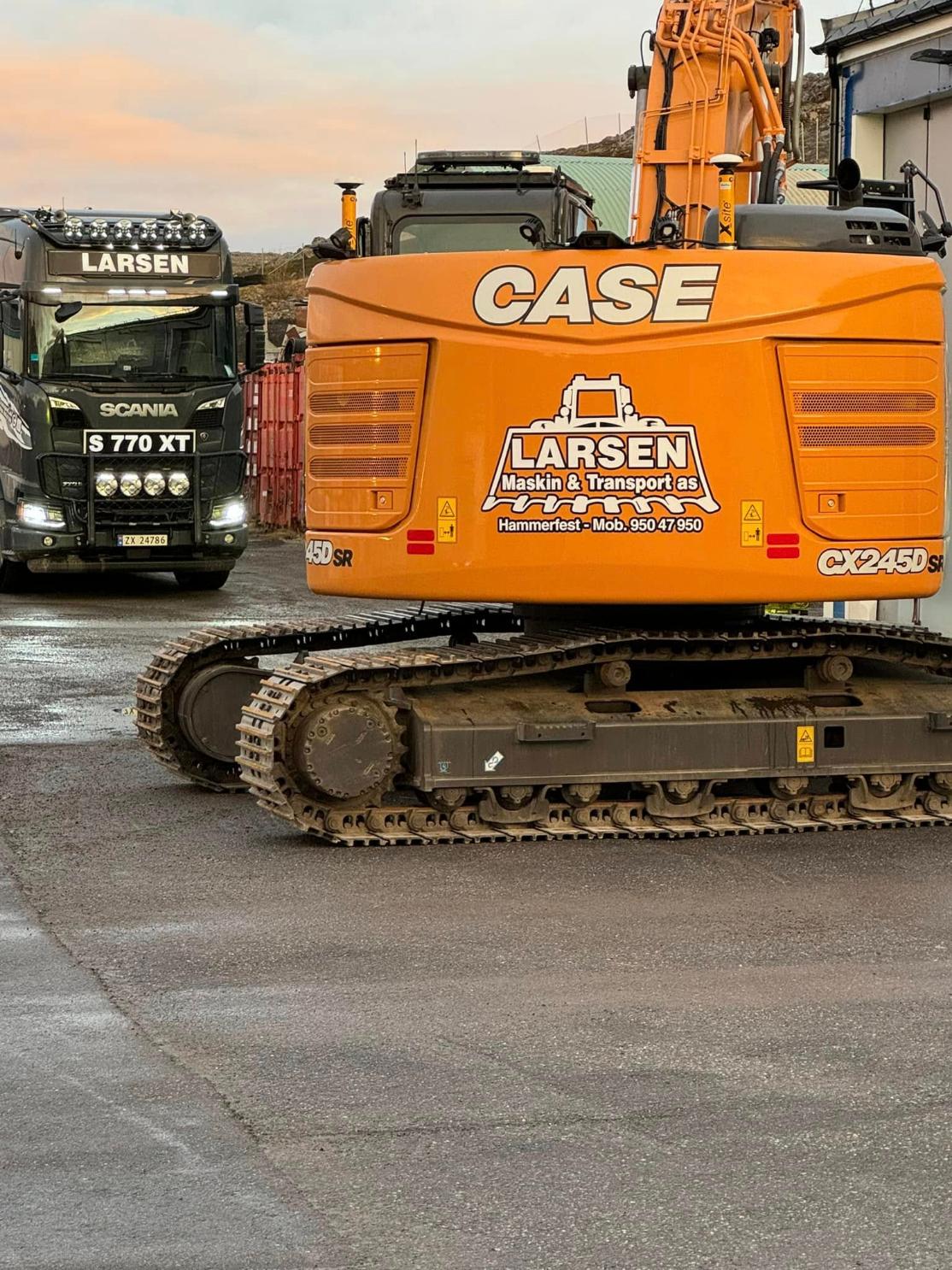 Larsen Maskin & Transport AS har en variert og oppdatert maskinpark som gjør oss fleksible i alle typer prosjekter fra grunnarbeid og VA‑anlegg til massetransport og vinterdrift. Vi investerer jevnlig i nytt utstyr for å sikre høy driftssikkerhet, effektiv gjennomføring og trygge arbeidsprosesser. Maskinparken vår består blant annet av gravemaskiner, hjullastere, lastebiler, traktorer og snøfresere, i tillegg til spesialutstyr for rørinspeksjon, tining og kabelarbeid.