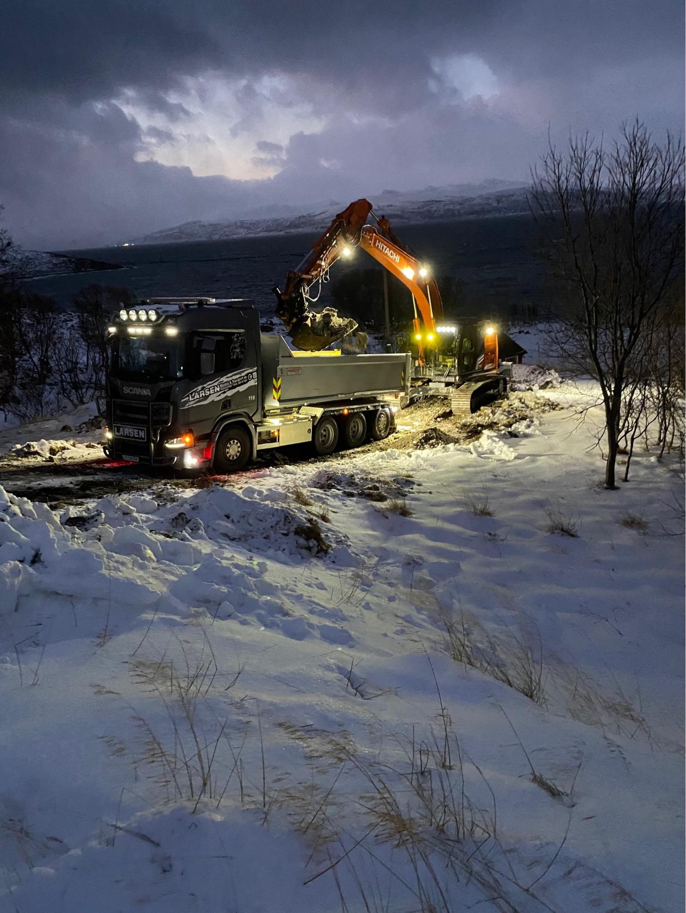 Maskinparken vår blir jevnlig vedlikeholdt av erfarne fagfolk. Dette sikrer at maskinene alltid er klare for nye oppdrag, og at vi kan levere trygt og effektivt, også under krevende forhold.